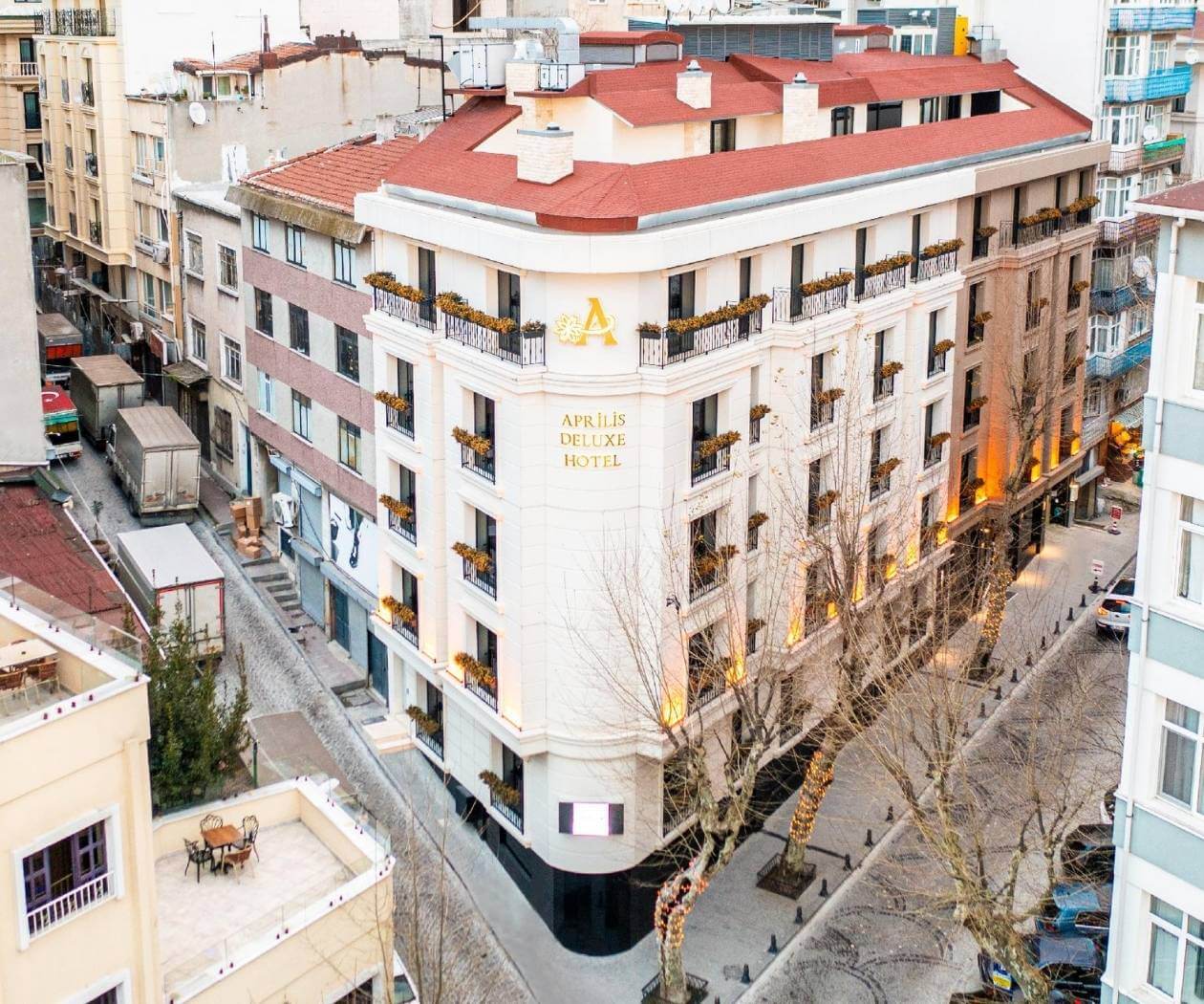 Aprilis Deluxe Hotel offers 4-star amenities near Sultanahmet Mosque, including free Wi-Fi, fitness center, garden, and terrace. Rooms feature air conditioning, TV, and safe. Enjoy buffet breakfast and easy access to Hagia Sophia. Couples rated it 9.6 for location.